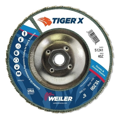 Weiler 51241 Tiger X Flap Disc, Type 29, 6 in, 40 Grit, 5/8 in-11 Hub Arbor