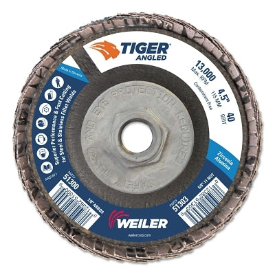 Weiler 51303 Tiger Angled Flap Disc, 5/8 in - 11, 40 Grit, 10 per Box