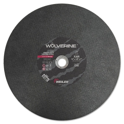 Weiler 56230 Wolverine AO Type 1 Stationary Saw Large Cutting Wheel, 14 in dia x 1/8 in, 1 in Arbor Hole, A30R