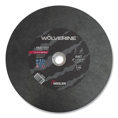 Weiler 56239 Wolverine AO Type 1 Chop Saw Large Cutting Wheel, 12 in dia x 3/32 in, 1 in Arbor Hole, A46T