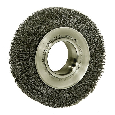 Weiler 6450 Medium-Face Crimped Wire Wheel, 6 in D, .0118 Stainless Steel Wire