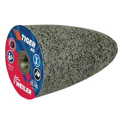 Weiler 68309 Tiger Grinding Cone, 2 in dia x 3 in Thick x 3/8 in-24 Arbor, 24 Grit, Aluminum Oxide, Type 16, 12 EA/BX