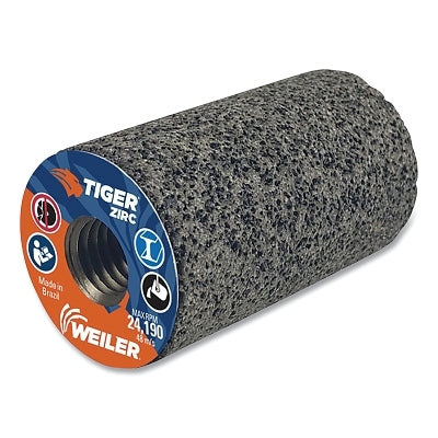 Weiler 68320 Tiger Grinding Plug, 1-1/2 in dia x 2-1/2 in Thick x 5/8 in-11 Arbor, 20 Grit, Zirconia Alumina, Type 18, 12 EA/BX