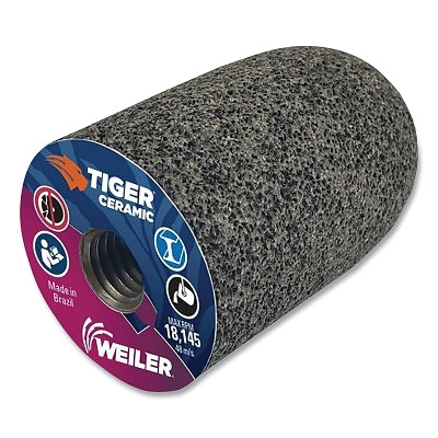 Weiler 68406 Tiger Grinding Cone, 2 in dia x 3 in Thick x 5/8 in-11 Arbor, 20 Grit, Ceramic Alumina, Type 18R, 12 EA/BX
