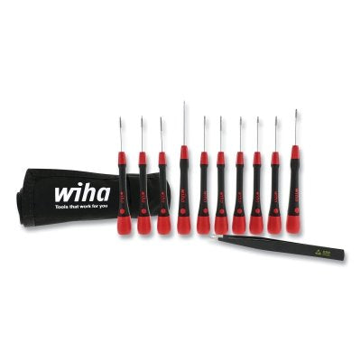 Wiha Tools 26198 PicoFinish Precision Screwdriver set, 11 Pc, Roll Pouch, Tweezers