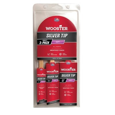 Wooster 52290000 Silver Tip Paint Brushes, 1 in; 1-1/2 in; 2 in W, Polyester, wood handle