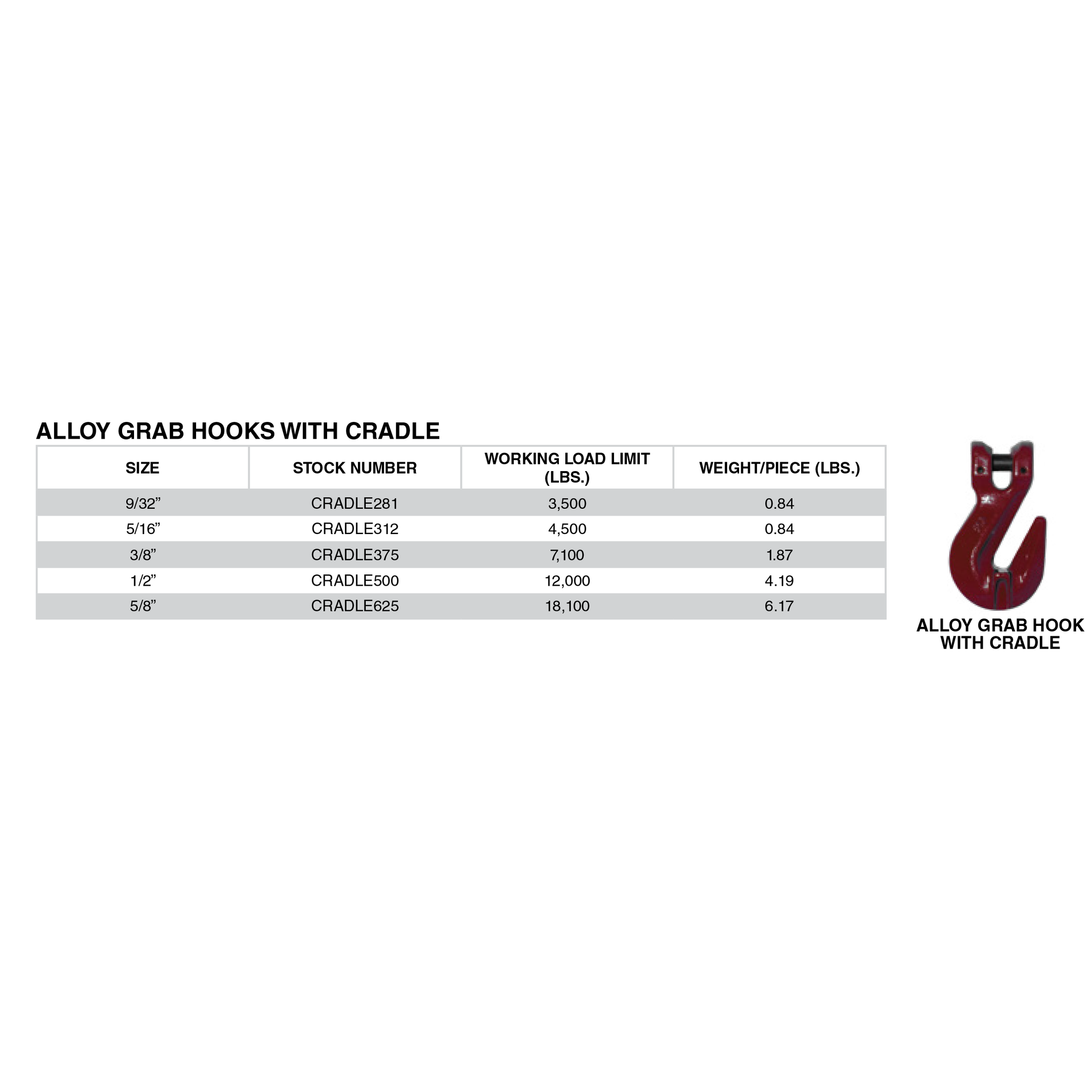 With the x100 CRADLE500I ALLOY GRAB HOOKS WITH CRADLE, you can confidently tackle any lifting task, knowing you have the support of high-performance equipment. Upgrade your rigging setup today and experience the difference in quality and efficiency. Don’t compromise on safety—choose the best for your operations!