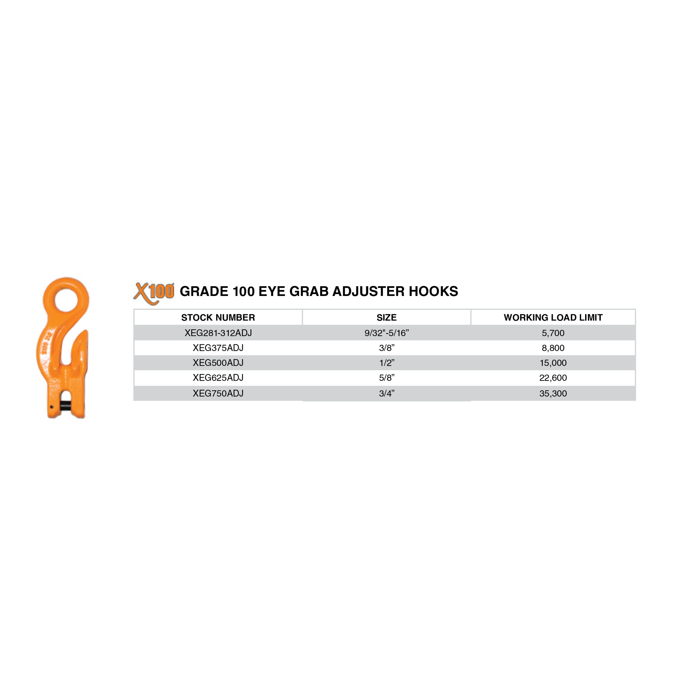 X100 XEG281-312I X100 GRADE 100 EYE GRAB ADJUSTER HOOK
